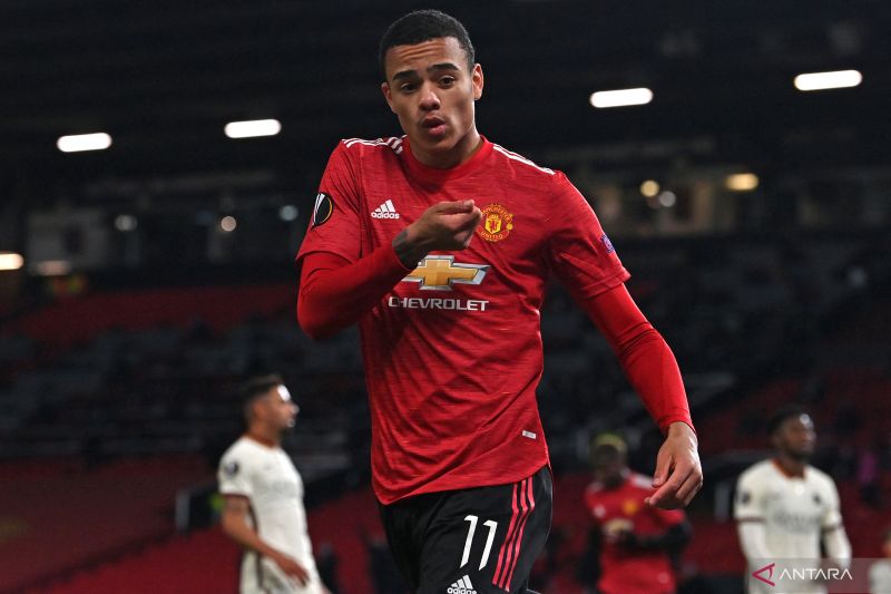 Pemain depan Manchester United Mason Greenwood (ANTARA/AFP/PAUL ELLIS)
