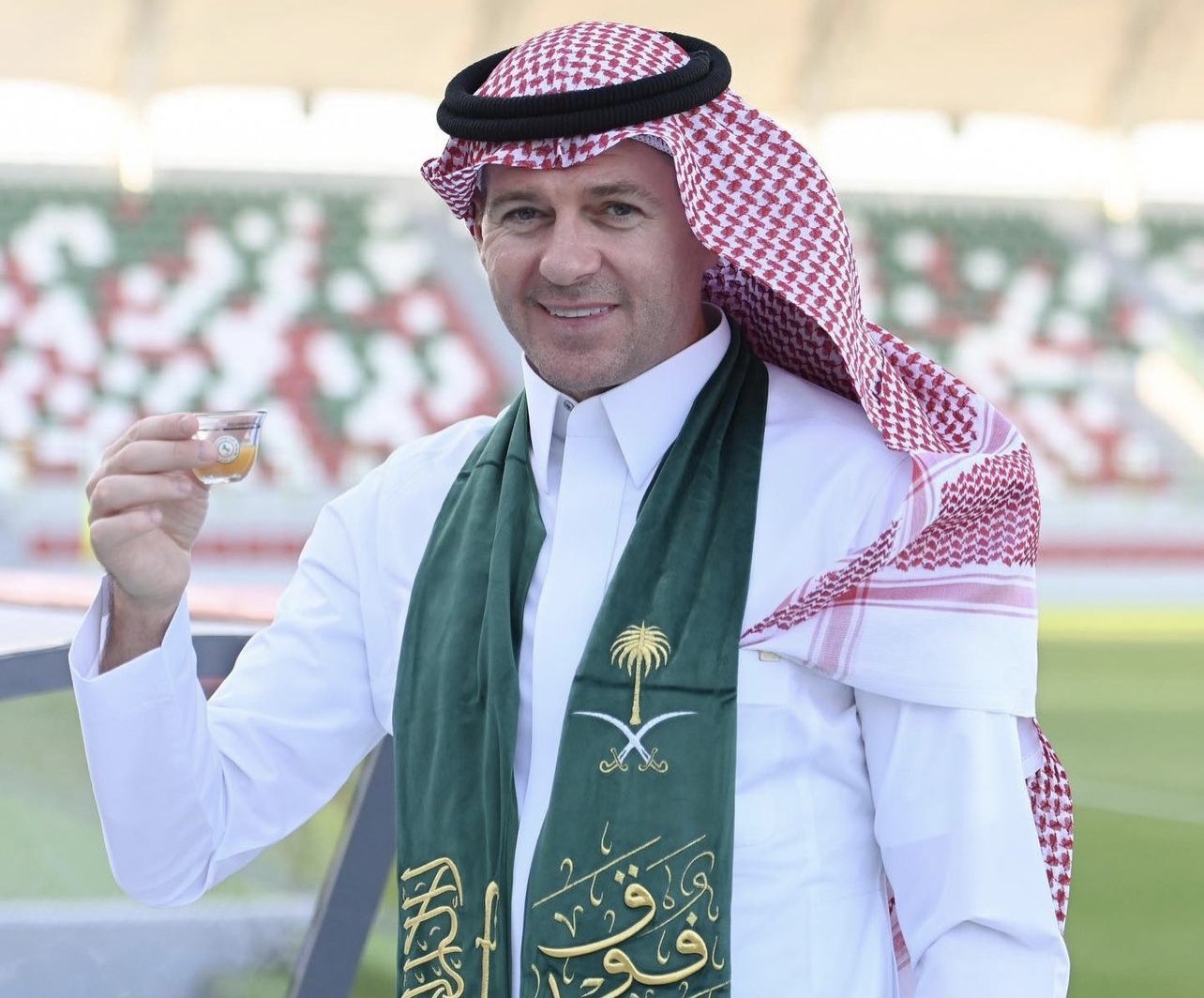 ”Berbusana untuk memperingati #SaudiNationalDay93,” bunyi takarir Gerrard dalam unggahan di Instagram.