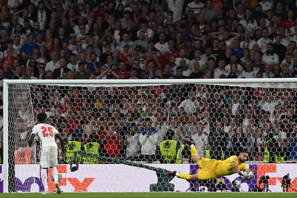 Mereka adalah Marcus Rashford, Jadon Sancho, dan Bukayo Saka. Tendangan Rashford melebar. Sedangkan sepakan Sancho dan Saka berhasil ditepis Gianluigi Donnarumma.
