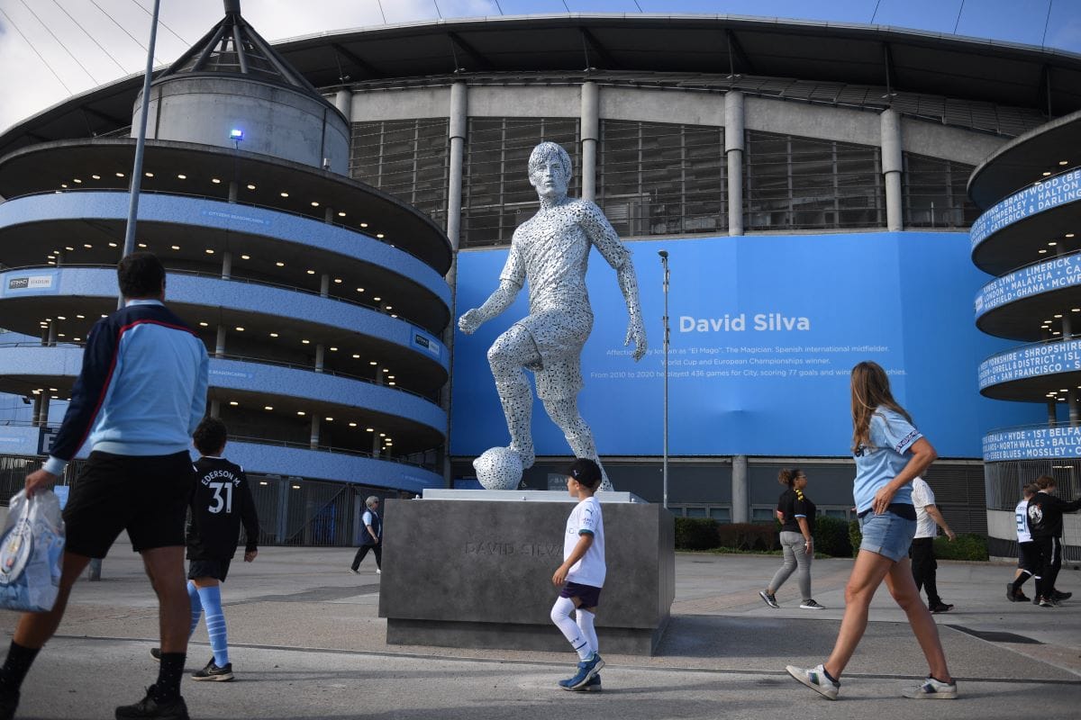 Patung David Silva telah berdiri di sisi timur luar Etihad Stadium. (OLI SCARFF/AFP)