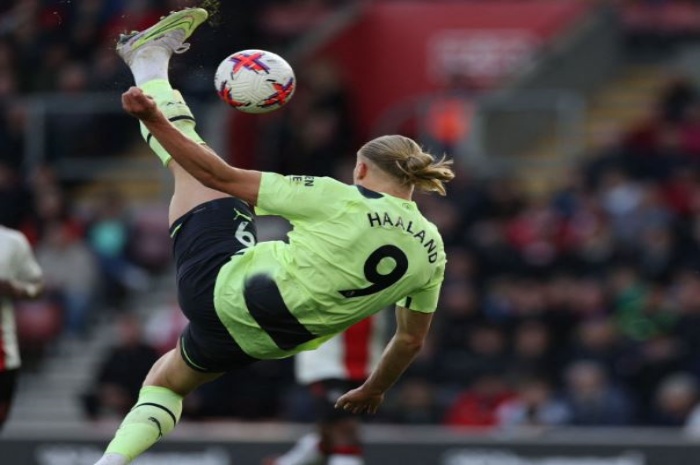 Erling Haaland mencetak gol ke-30 di Liga Premier dengan salto luar biasa.