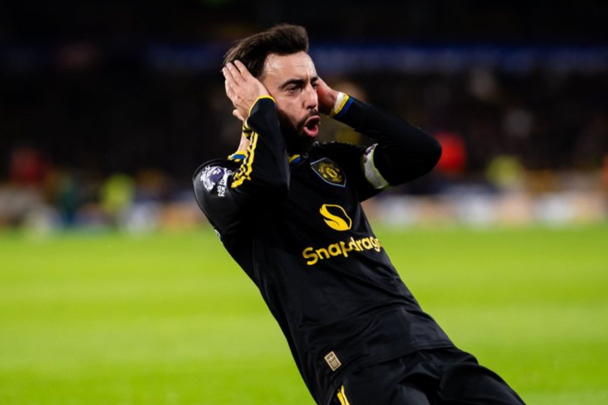 Bruno Fernandes cetak dua gol untuk Manchester United. (@ManUtd/X).