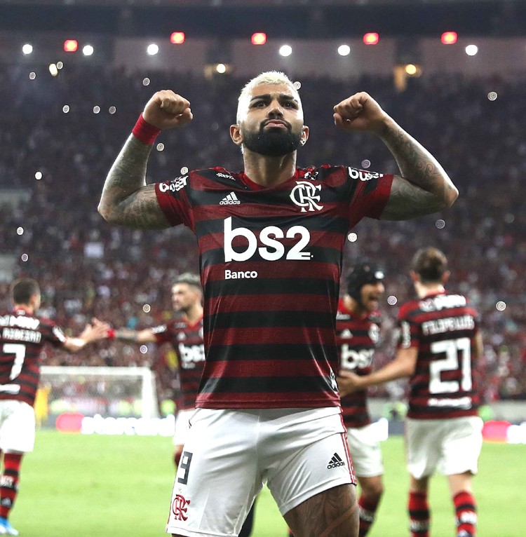 epa07944675 Gabriel Barbosa of Flamengo celebrates after scoring during the Copa Libertadores semifinal soccer match between Flamengo and Gremio at the Maracana Stadium in Rio de Janeiro, Brazil, 23 October 2019.  EPA-EFE/MARCELO SAYAO - Image