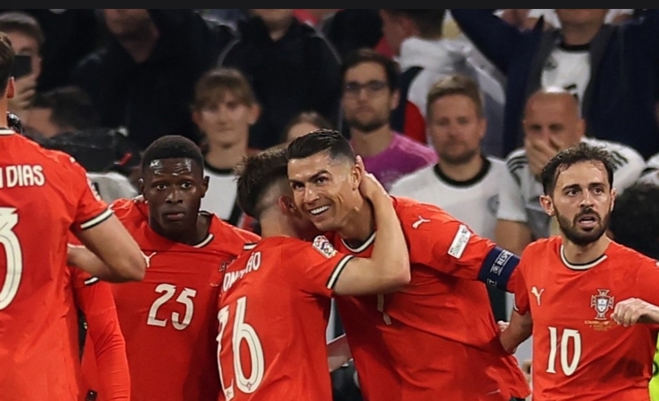 JawaPos.com-Cristiano Ronaldo memastikan kemenangan Portugal atas Jerman di semifinal UEFA Nations League A. Berkat gol pemain 40 tahun itu, Portugal menang 2-1 atas Jerman pada Kamis (5/6) di Allianz Arena, Munchen.