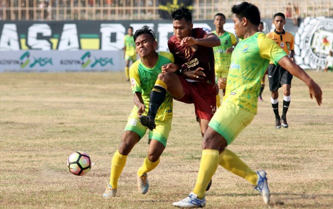 Persip (kuning hijau) saat dikalahkan PSS Sleman