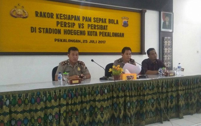 Hal itu diungkapkan Ketua Panpel, Mustakim dalam rapat koordinasi (rakor) yag digelar di Aula Polresta Pekalongan, Selasa (29/7). Rakor itu dihadiri oleh perwakilan Polres Pekalongan Kota, Polres Batang, Polres Pekalongan, manajemen serta suporter Persip dan Persibat.