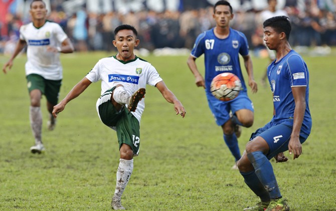 SIAP TANDING: Gelandang Persebaya Surabaya Rendi Irwan saat membela timnya melawan PSIS Semarang.