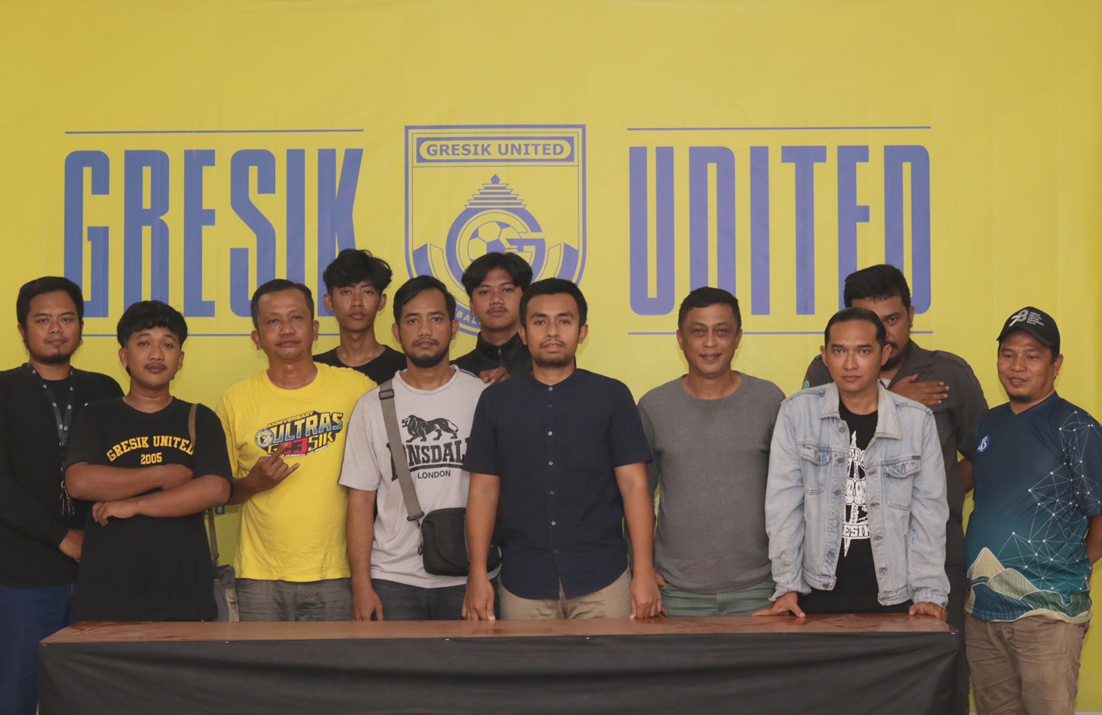CEO Gresik United Muhammad Allan (lima dari kanan) bersama perwakilan suporter di kantor Gresik United kemarin.