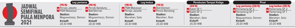 Berbeda dengan babak sebelumnya yang menggunakan sistem single match, babak semifinal bakal dimainkan dua leg. Selain itu, semifinal juga dimainkan pada bulan Ramadan yang membuat kickoff mundur lebih malam menjadi pukul 20.30 WIB.