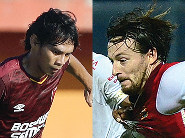 Rasyid Bakrie (PSM Makassar) - Mark Klok (Persija Jakarta) (ANGGER BONDAN/JAWA POS - IPUNK PURWANTO/NEW MALANG POS)