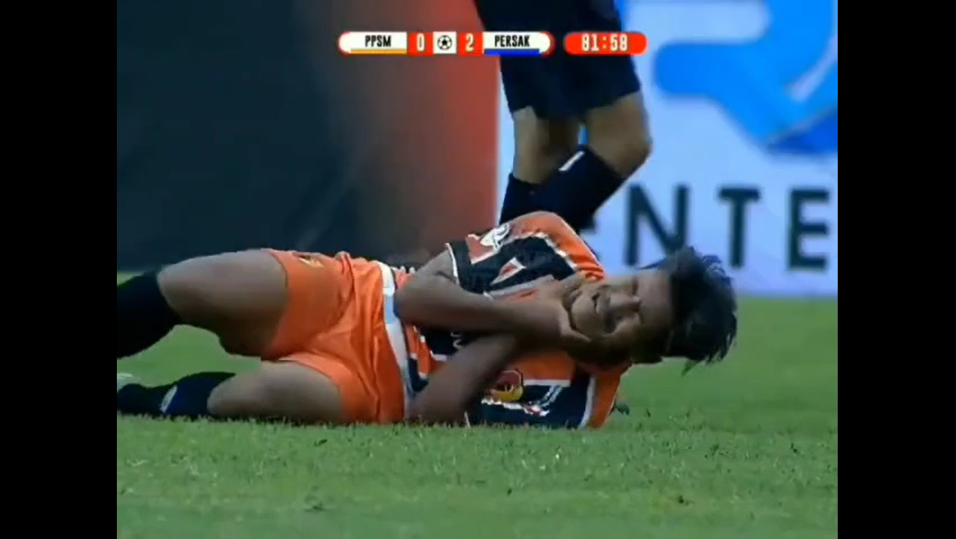 Pemain PPSM Odsantino Berti mendapatkan pelanggaran keras di menit ke-82. Di mana, area sekitar dada di bawah leher ’’diinjak’’ oleh pemain Persak Tri Hartanto.