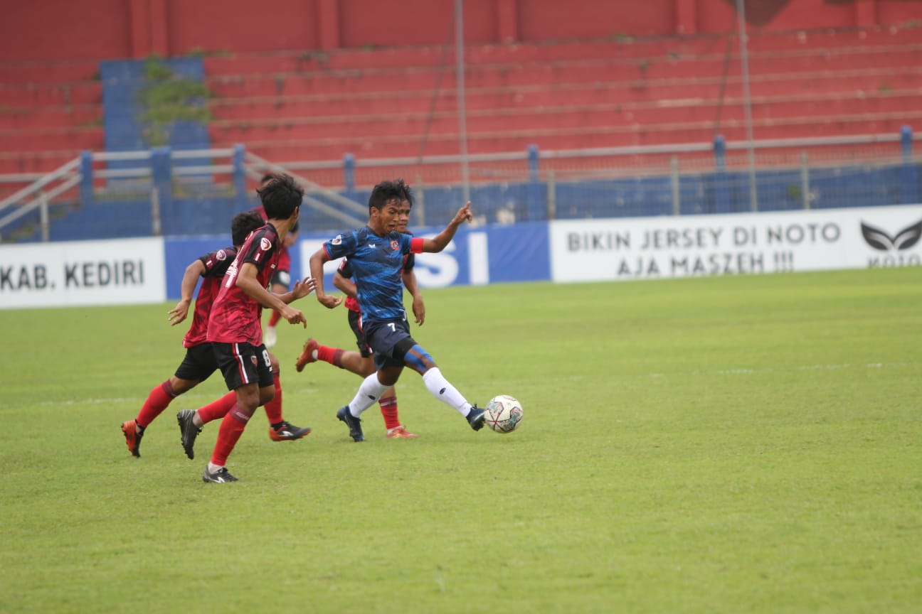 JawaPos.com-Perjalanan Persedikab Kabupaten Kediri di babak 32 besar Liga 3 Nasional ”naik turun’’. Di laga pertama, mereka diuntungkan wasit. Persedikab mencetak gol kemenangan pada menit 90+7’ kontra Maluku FC (17/2). Padahal, tambahan waktu hanya empat menit.