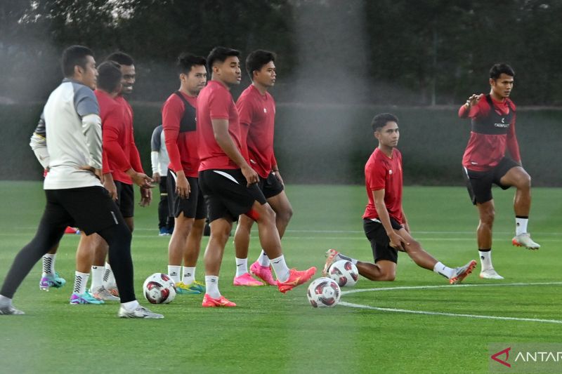 Sejumlah pesepak bola Timnas Indonesia melakukan latihan di Stadion Al Egla 4, Lusail, Qatar, Sabtu (13/1/2024). ANTARA FOTO/Yusran Uccang/nym. (ANTARA FOTO/YUSRAN UCCANG)