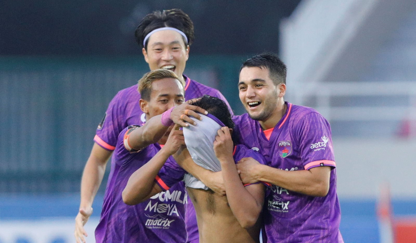 ANGGER BONDAN/JAWA POS MAKIN PADU: Para pemain Persita Tangerang melakukan selebrasi di babak penyisihan grup Piala Presiden 2022 lalu.