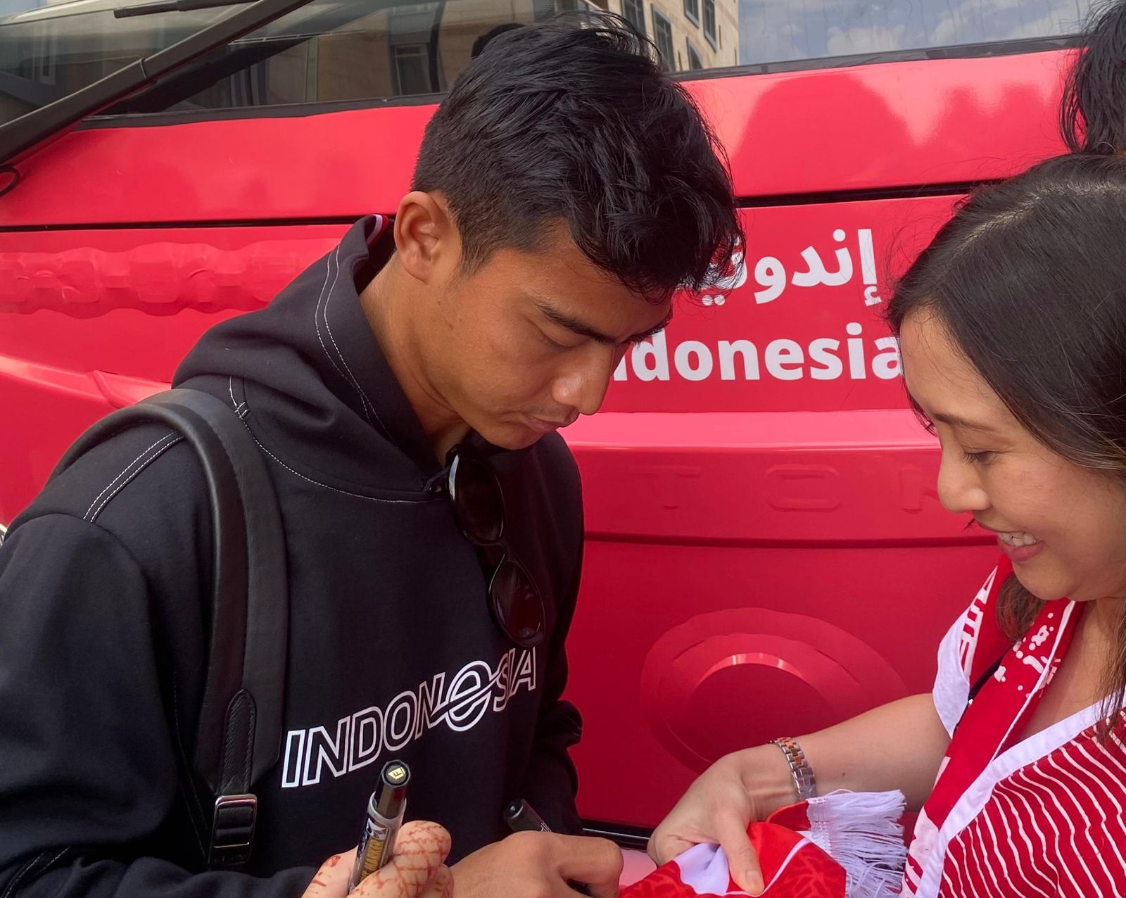 Pratama Arhan saat memberikan tanda tangan pada seorang fans. (Istimewa)