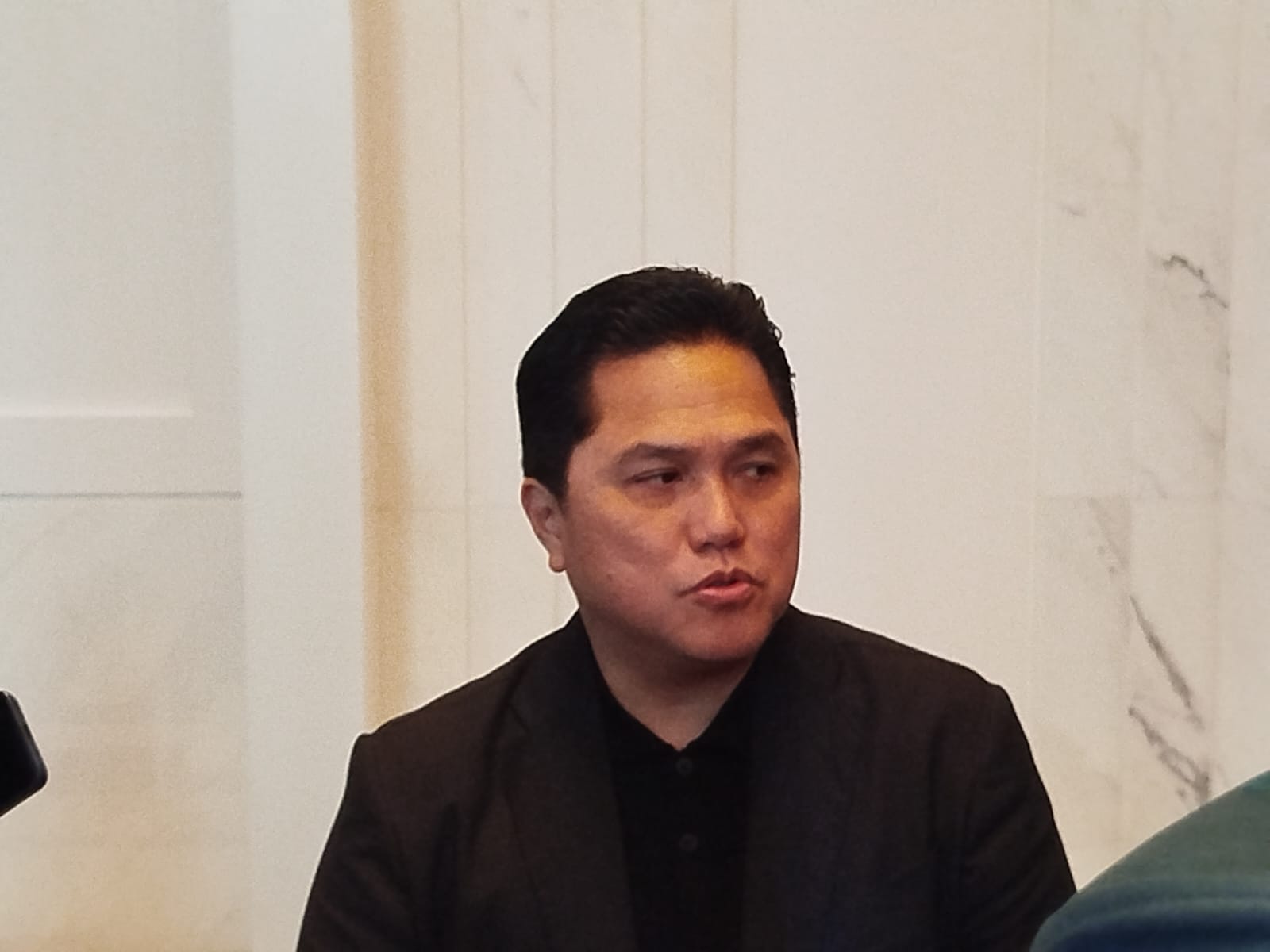 Ketua Umum PSSI, Erick Thohir, berbicara mengenai rumor Kevin Diks yang akan bela Timnas Indonesia. (Dimas Ramadhan/JawaPos.com)