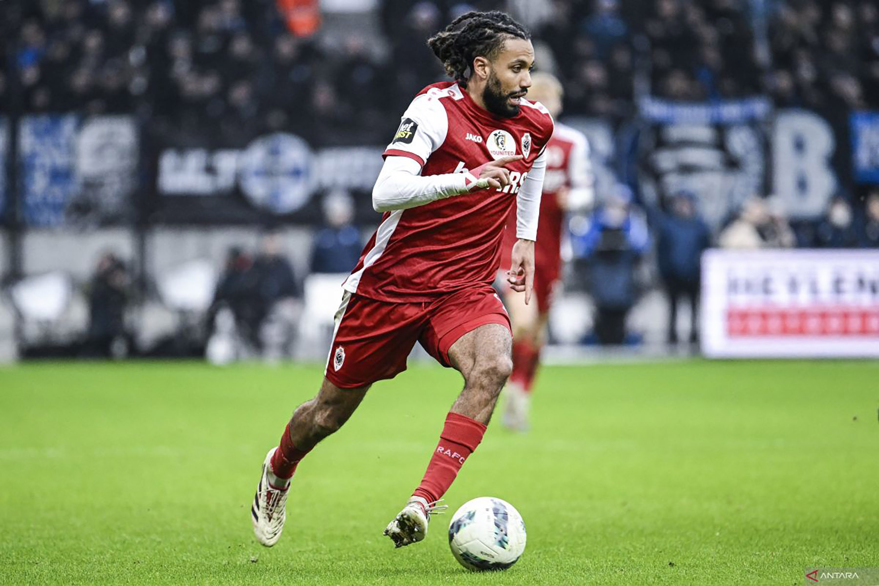 Arsip foto - Gelandang Belanda Antwerpen #04 Jairo Riedewald berlari dengan bola selama pertandingan sepak bola Divisi Pertama "Liga Pro" Belgia antara Royal Antwerp FC dan KRC Genk.