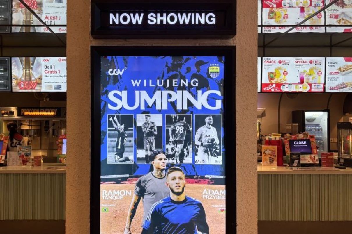 Pemain anyar Persib Bandung Adam Pryzbek dan Ramon Tanque diperkenalkan melalui poster bioskop di CGV PVJ Mall, Kota Bandung, Sabtu (28/6). (Rubby Jovan/Antara)