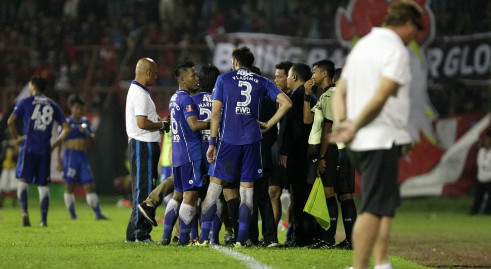 Aksi protes kubu Persib kepawa wasit di kandang PSM.