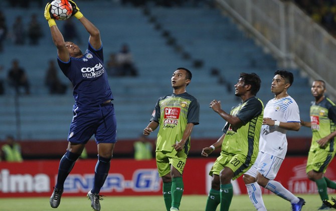 SELAMAT JALAN: Achmad Kurniawan (kiri) ketika membela Arema Cronus -kini Arema FC- saat berhadapan dengan Bhayangkara FC.