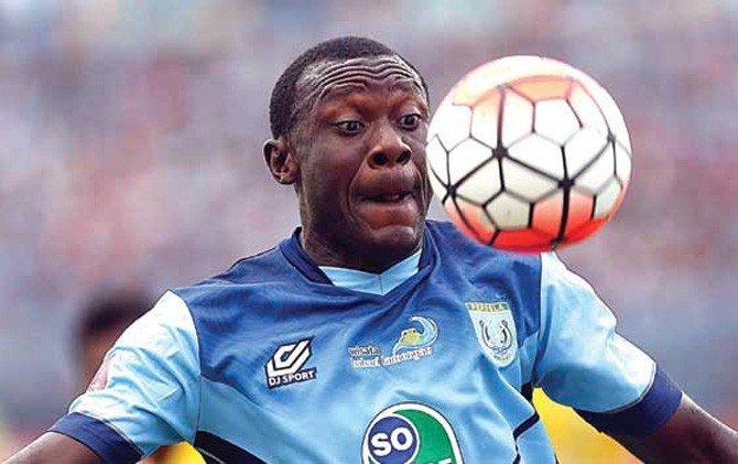 Dzumafo saat berkostum Persela. Dia ingin bergabung PSPS, hanya saja terbentur regulasi di Liga 2