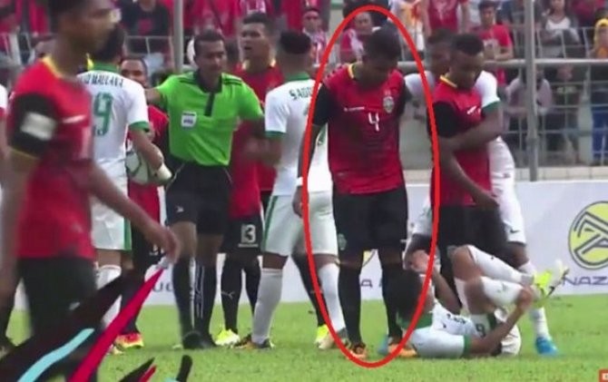 JawaPos.com - Pemain Timor Leste, Filipe Oliveira, mendapat batunya usai bermain kasar melawan timnas U-22 Indonesia di Stadion Selayang, Minggu (20/8). Hal ini setelah dia mendapat serangan di media sosial pribadinya.