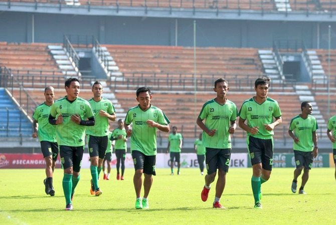 Skuad Persebaya Surabaya saat menggelar latihan beberapa waktu lalu.