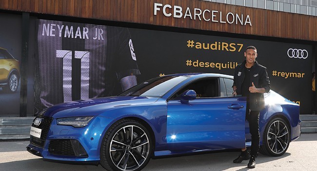 KALAH MAHAL: Striker Barcelona Neymar dengan mobil Audi RS7 Sportback.