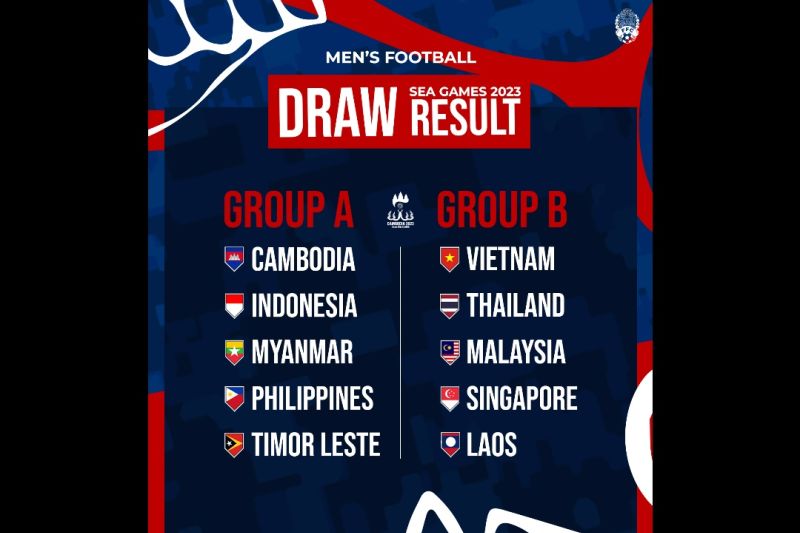 Hasil undian cabang olahraga sepak bola putra pada SEA Games 2023 di Kamboja, Rabu.