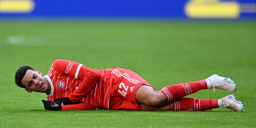 Gelandang serang Bayern Munchen Jamal Musiala berperilaku tidak sepatutnya saat timnya kandas di perempat final DFB-Pokal (5/4).