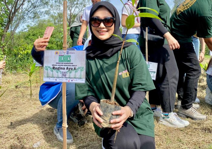 ”Kegiatan influencer tidak selalu mempromosikan barang saja, tetapi lebih jauh harus ikut serta dalam menjaga kelestarian lingkungan hidup,” ujar Regina usai melakukan penanaman bibit mangrove.
