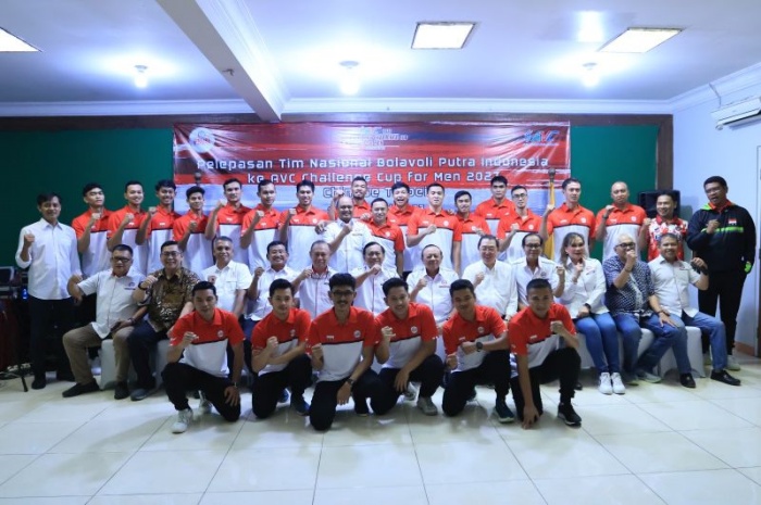 Momen saat pelepasan tim voli putra Indonesia menjalani AVC Challenge di Taiwan. Indonesia gagal ke semifinal setelah dikalahkan Thailand 2-3.