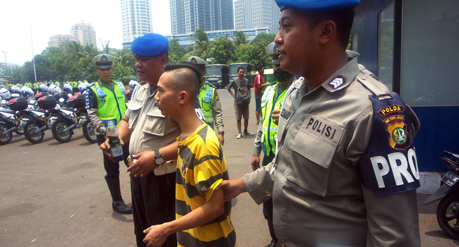 Salah satu Viking yang mengaku dari Garut itu kedapatan membawa anggur oplosan di dalam tasnya saat digeledah anggota Polda Metro Jaya.