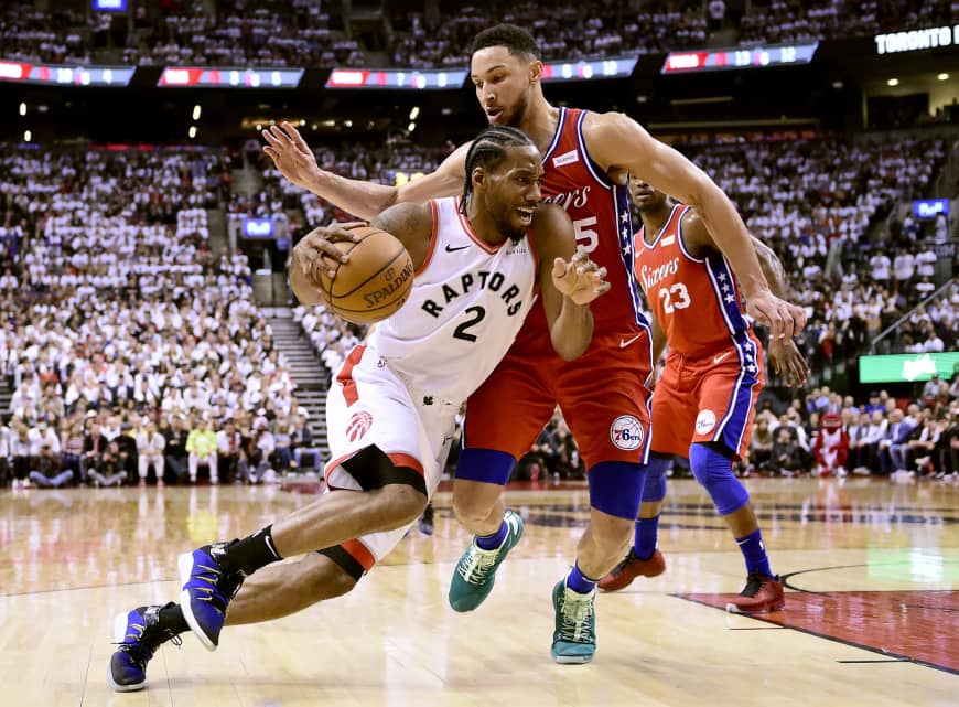 JawaPos.com - Kawhi Leonard membuat Scotiabank Arena bergemuruh usai tembakan dua angkanya dari pinggir lapangan berhasil masuk ke ring Philadelphia 76ers di penghujung laga game 7 babak semifinal Wilayah Timur NBA, Senin (13/5). Raptors berhak atas tiket final setelah memenangi laga ketat kontra 76ers dengan skor 92-90 dan unggul dengan kedudukan 4-3.