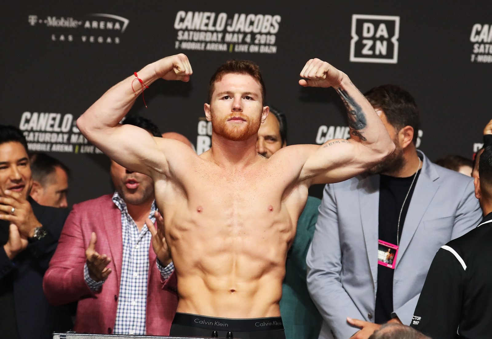 AFP TANTANGAN BARU: Canelo Alvarez dalam sesi timbang badan jelang laga kontra Daniel Jacobs Mei lalu.