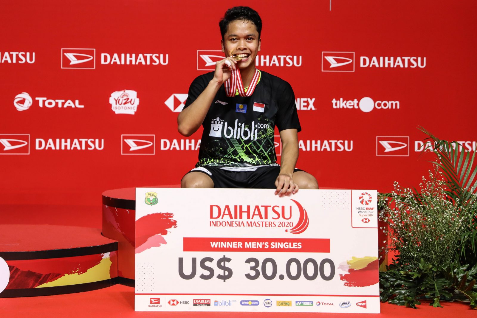 Di partai final, Ginting mengalahkan Anders Antonsen (Denmark), dengan skor 17-21, 21-15, 21-9.