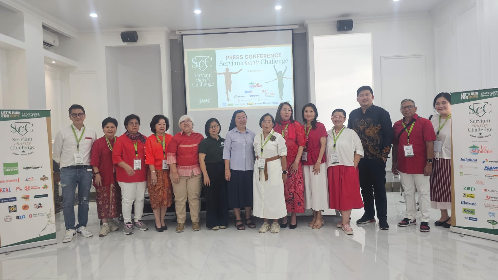 FILANTROPI DAN OLAHRAGA: Konferensi pers Fun run Serviam Charity Challenge (SCC) 2023 di Kampus Santa Maria, Jalan Juanda, Sawah Besar, Jakarta Pusat, Sabtu (12/8).