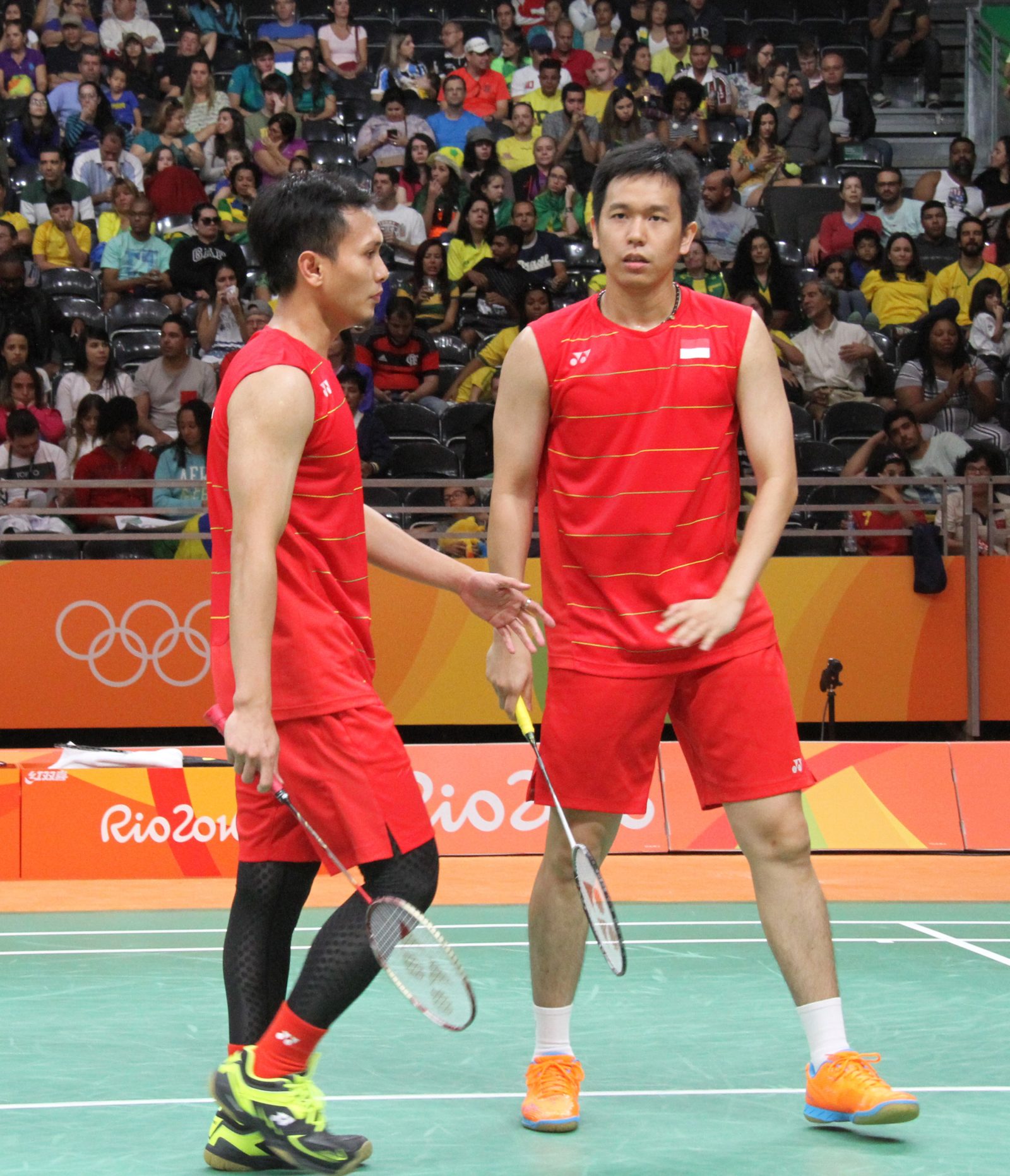 Hendra dan Ahsan saat berlaga di Olimpiade Rio 2016. (Ainur Rohman/Jawa Pos)
