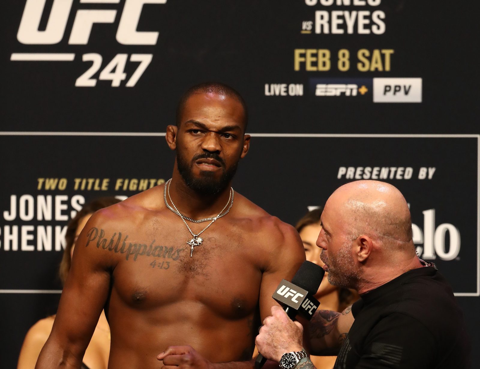 RONALD MARTINEZ/Getty Images via AFP BIKIN PANAS: Joe Jones berbicara dengan Joe Rogan di sela event UFC 247 (7/2). Dia mengkritik cara kerja Dana White.