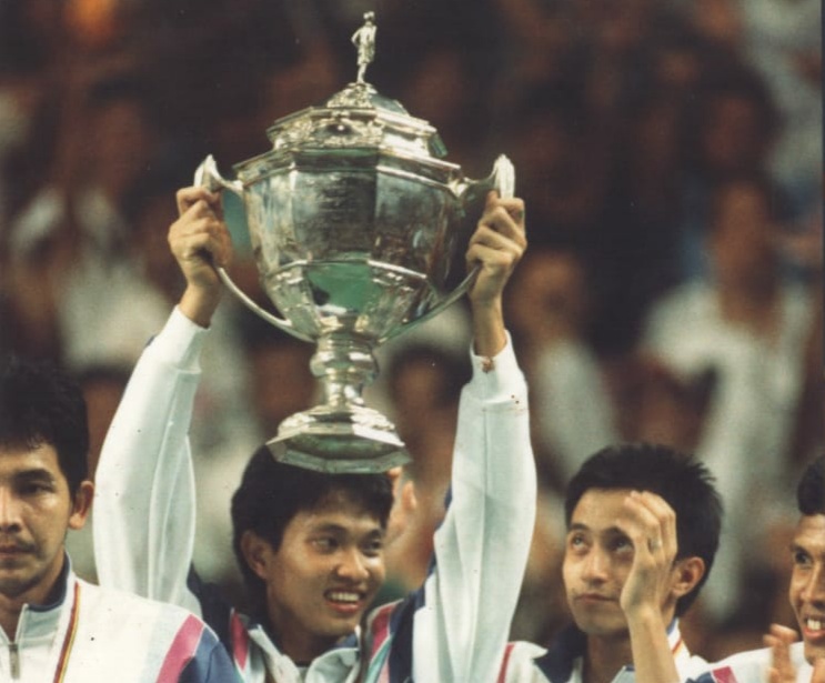 Hariyanto Arbi ketika mengangkat trofi Piala Thomas 1994. (Dok Hariyanto Arbi)