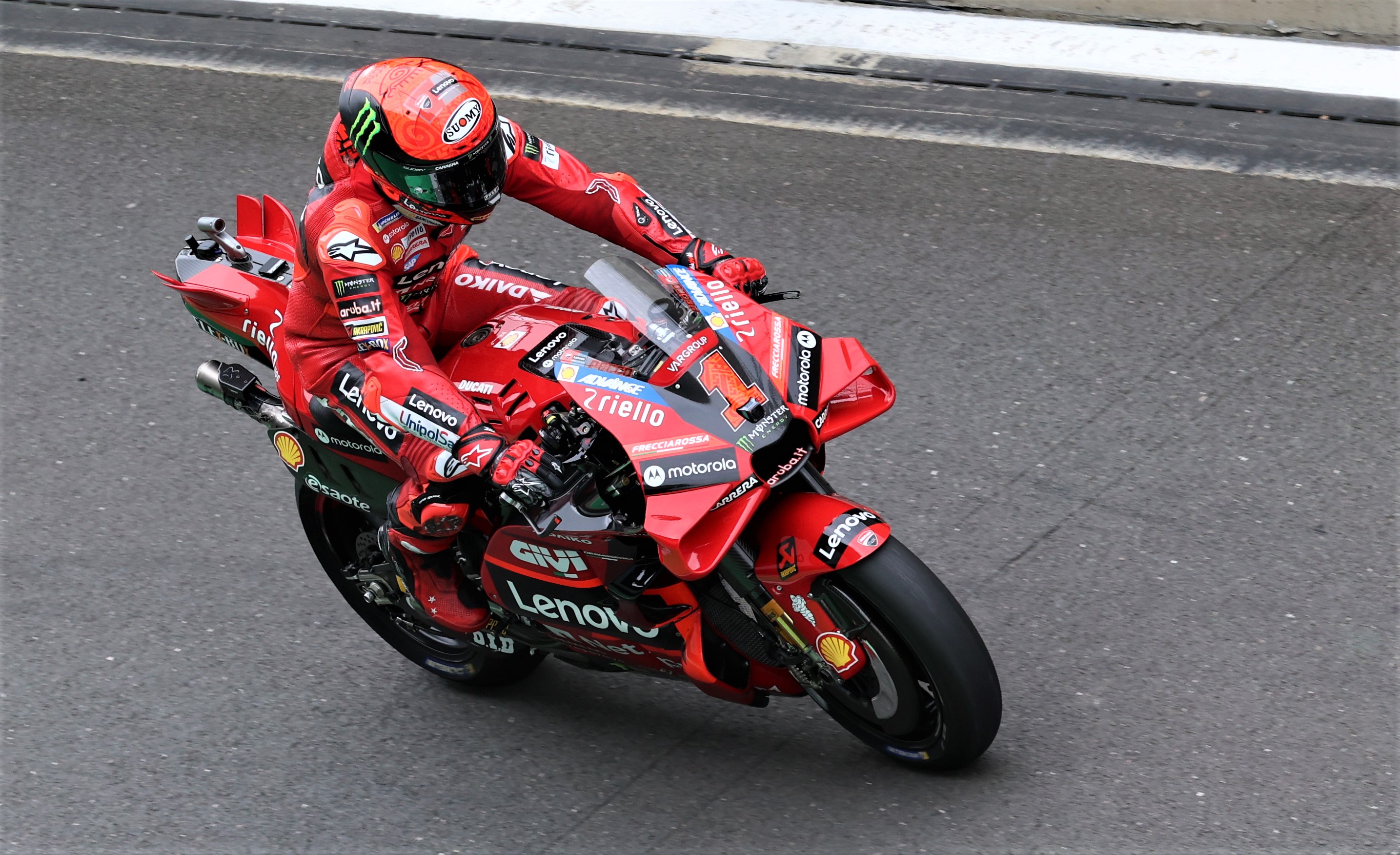 ”Aku belum paham apa yang terjadi. Tapi, sejak pemanasan aku memang sudah merasa tidak memiliki cengkeraman ban belakang yang normal,” ungkap Bagnaia.