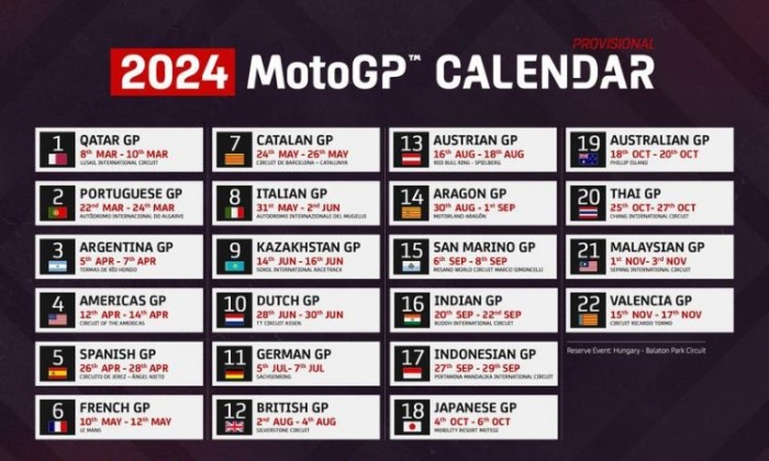 Kalender Sementara gelaran MotoGP 2024. (motogp.com)