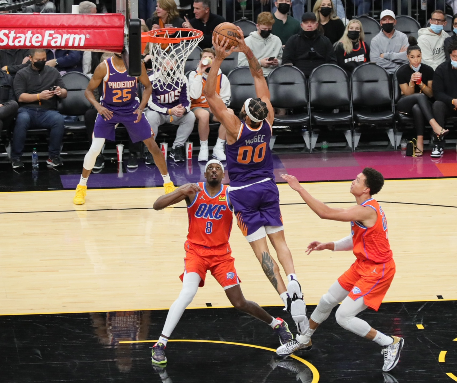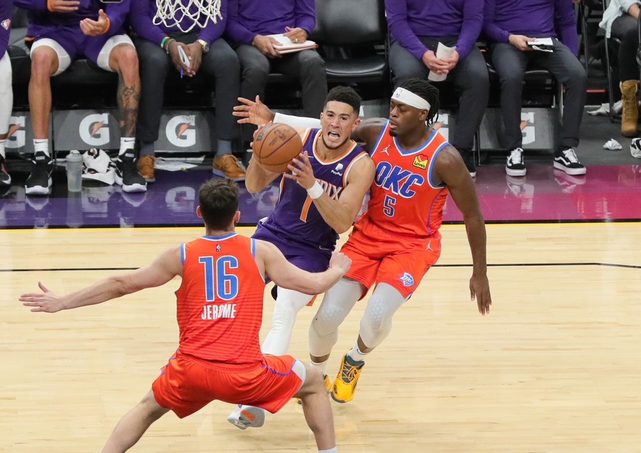 Dari kubu Thunder, dua shooting guard Ty Jerome dan Aaron Wiggins bahu membahu dalam mencetak angka. Mereka mendulang 24 dan 22 poin. Tetapi itu tidak cukup untuk menghentikan laju Suns.