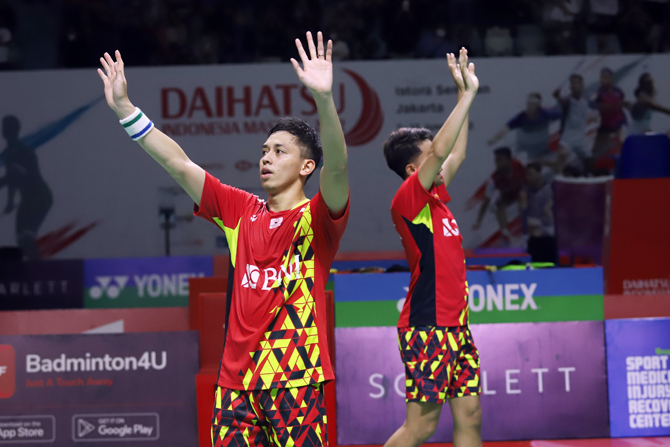 Pada semifinal di Istora Gelora Bung Karno, Senayan, Jakarta, Fajar/Rian mengandaskan ganda Tiongkok He Jiting/Zhou Haodong dalam dua game langsung 21-17 dan 21-17.