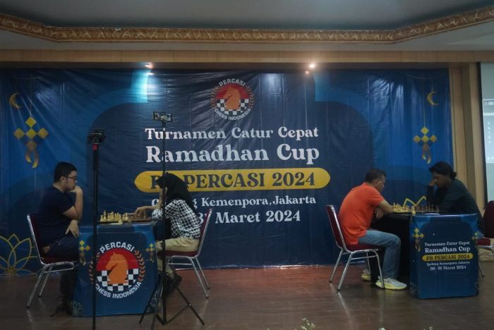 Kejuaraan catur Ramadhan Cup PB Percasi 2024 digelar di Gedung Kemenpora, Jakarta, pada Sabtu (30/3).