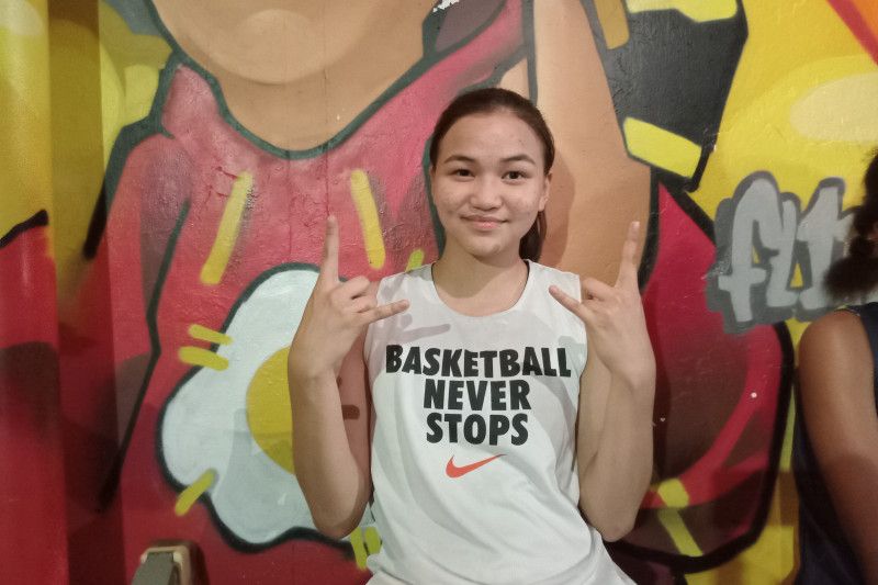 Atlet bola basket putri Maxine Maria Sutisna berpose di sela-sela turnamen eksebisi Wonders di M Bloc, Jakarta, Minggu (21/5/2023). (ANTARA/RAUF ADIPATI)