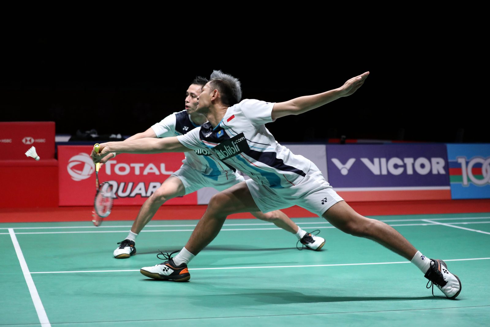 Sementara itu, ganda nomor dua dunia Hendra Setiawan/Mohammad Ahsan takluk di tangan Li Junhui/Liu Yuchen, juga dari Tiongkok, dengan skor 20-22, 21-19, 22-24.