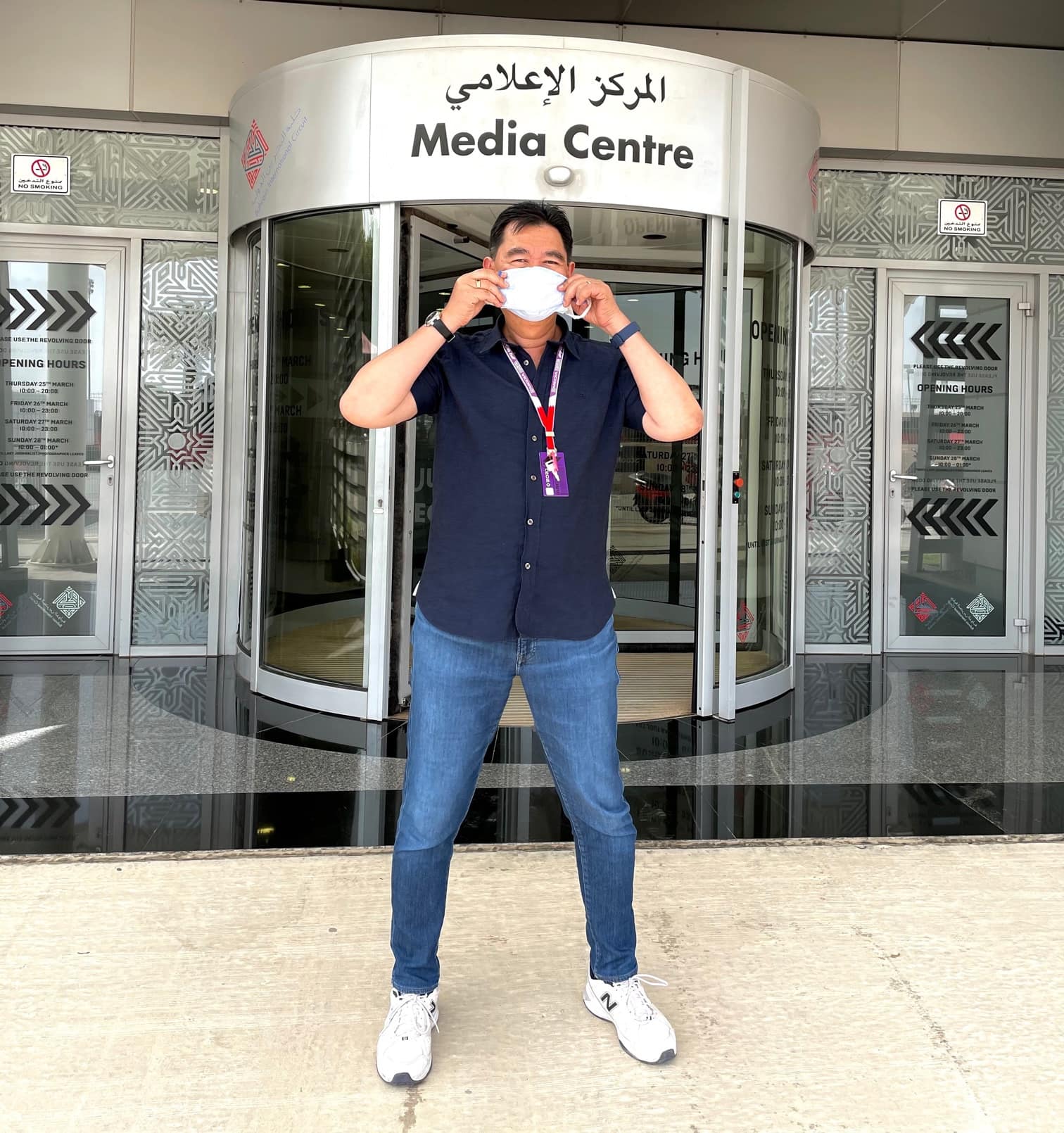 Kontributor Jawa Pos Bobby Arifin di depan Media Centre Bahrain International Circuit.