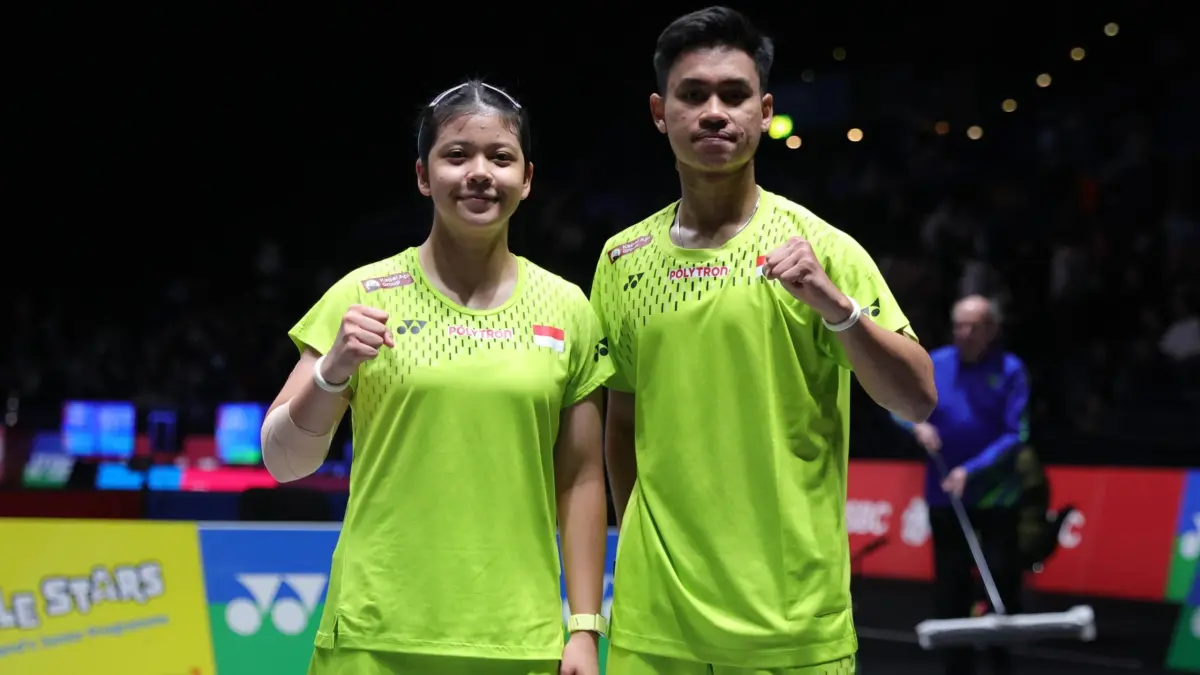 Selebrasi pasangan Ganda campuran Indonesia Jafar Hidayatullah/Felisha Alberta Nathaniel Pasaribu saat bertanding melawan ganda campuran Prancis Thom Gicquel/Delphine Delrue pada babak 8 besar Indonesia Masters 2026 di Istora Senayan, Jakarta, Kamis (22/1