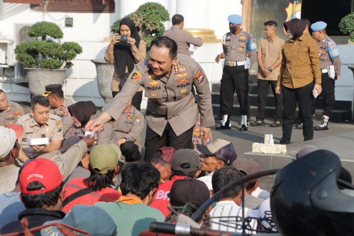 Kapolrestabes Surabaya Kombespol Pasma Royce sarapan bareng dengan abang becak, ASN, dan PHL, di lapangan A Mako Polrestabes Surabaya, Sambut HUT ke-77 Bhayangkara.